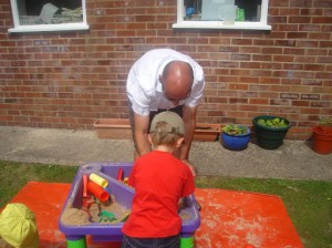 However most exciting of all, to celebrate Fathers Day we invited Dads, Uncles, and Grandads in to play. They all had a wonderful time joining in with all the activities, playing in the garden, making cakes, building rockets and planets, investigating snails and playing pirates.