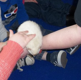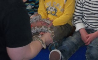 We had a visit from the ‘Zoo Lab’. We sat round in a circle while the lady showed us all her animals and talked about each one. She told us about animals sleeping in the winter and waking up in the spring.