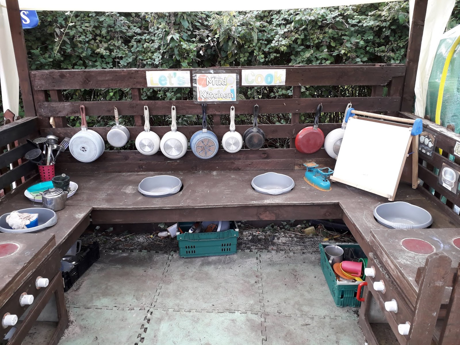 The Mud Kitchen built by Staff member Norma and her husband Nick continues to bring delight and learning to all the children. Mixing potions and mud pies, sorting resources, using utensils and working together contributes to every area of learning in the Early Years Foundation Stage.